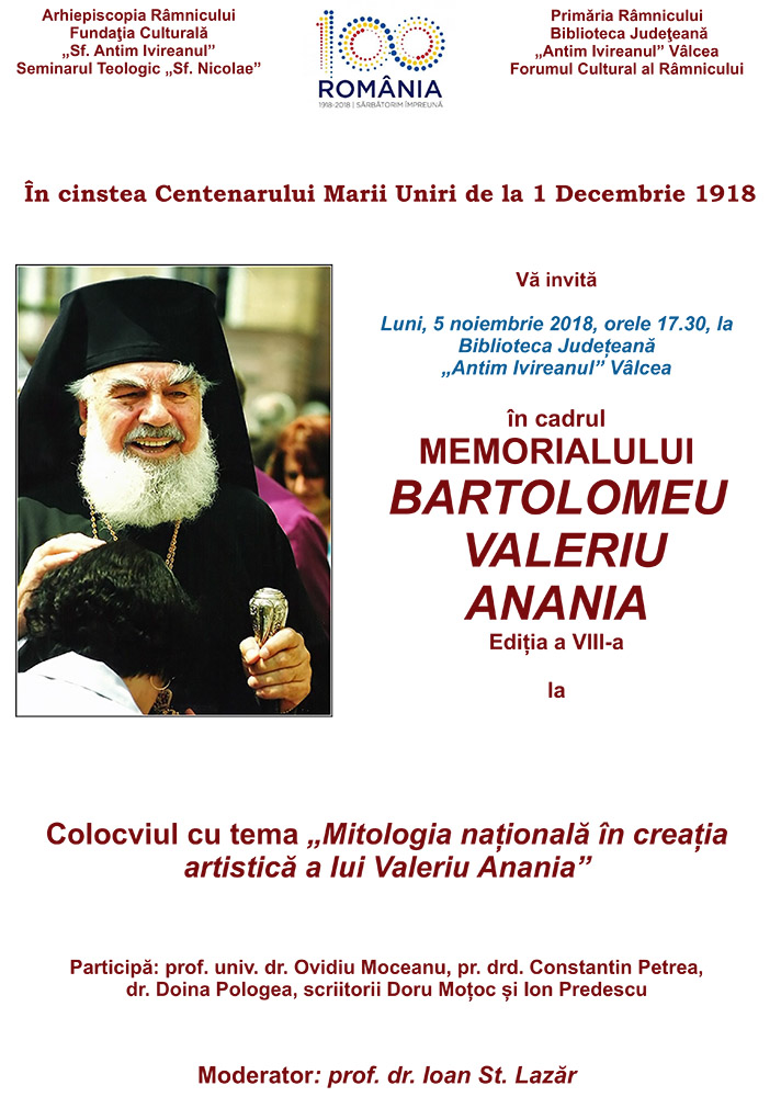 Sunteți aici: Biblioteca Judeteana Antim Ivireanul / Evenimente / Colocviul cu tema „Mitologia națională în creația artistică a lui Valeriu Anania”
