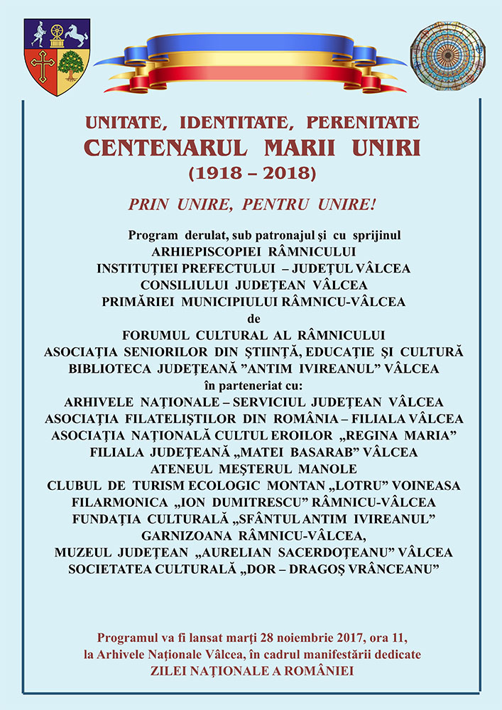 Programul va fi lansat marți, 28 noiembrie 2017, ora 11, la Arhivele Naționale Vâlcea, în cadrul manifestãrii dedicate ZILEI NAȚIONALE A ROMÂNIEI.