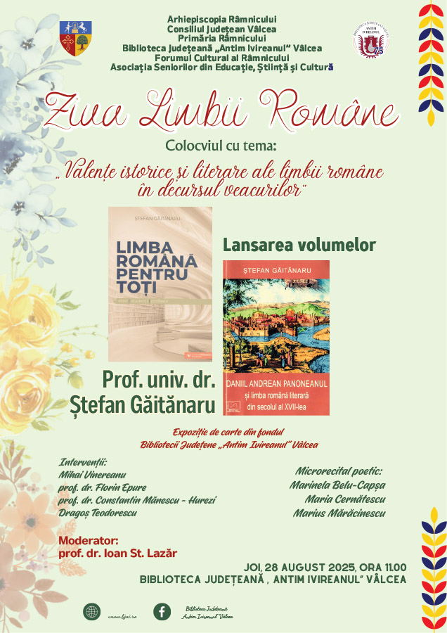Joi, 28 August 2025, ora 11:00, la Biblioteca Județeană Antim Ivireanul, are loc evenimentul: